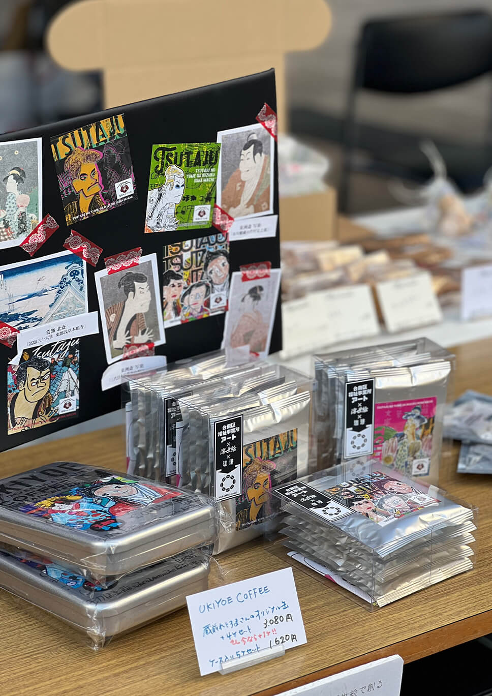 台東区内の5つの福祉事業所が浮世絵を模写するアートワークを手がけ、私たちNODDが珈琲のパッケージへとデザイン。